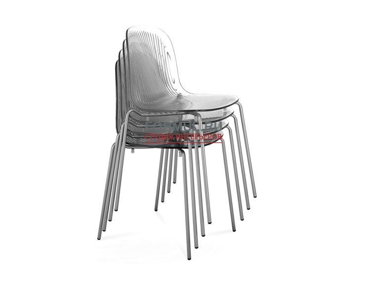 Стул с основанием из окрашенной стали, сидение и спинка - прозрачный пластик .