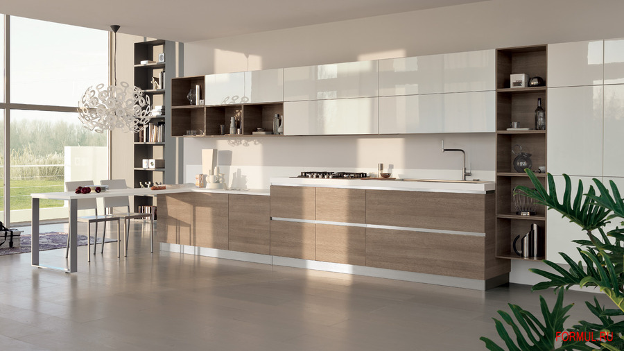 Инновационные решения на любой вкус кухни Mood, способной идти в едином ритме с современной жизнью и реализовывать любые идеи персонализации. Линейная кухня, характеризующаяся богатым содержанием и высокой функциональностью, расширяет свои горизонты в микрокосме дома; пространство для жизни без границ. Выполненная с различными системами открывания (створки под столешницей, створки под столешницей и центральный фасад, ручки), с использованием различных материалов и в цветовой гамме в соответствии с последними тенденциями моды, кухня Mood представляет собой уникальный проект, способный отвечать различным вкусам и реализовывать новые оригинальные идеи и решения. Эксклюзивные и изысканные атрибуты современной кухни, настоящей итальянской кухни.