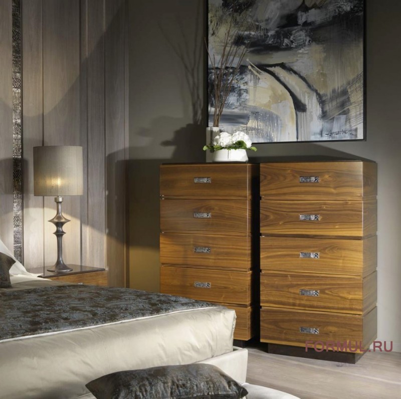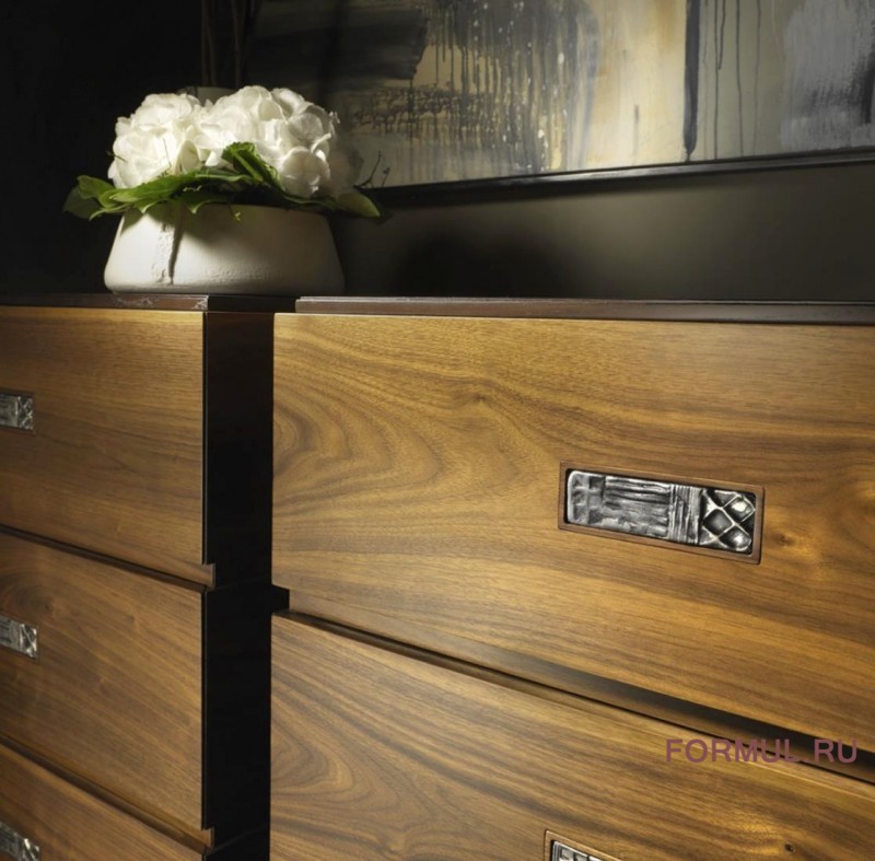 Данный предмет мебели играет важнейшую роль в интерьере спальни, обеспечивая удобную и упорядоченную сортировку и хранение одежды. Модель, представленная в коллекции Segreti, отличается современным элегантным стилем. Передние панели 5 больших ящиков комода украшены художественными вставками из керамики, выполненной вручную, что придает его дизайну уникальность.