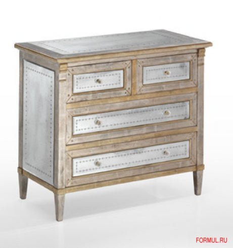 Деревянный комод с серебрянной отделкой "mecca" и гравированными зеркальными панелями под старину