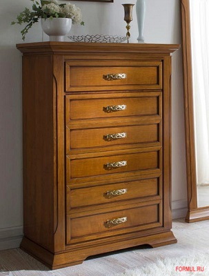 Комод высокий с 6-ю ящиками. Корпус выполнен из ДСП отделанной шпоном европейской вишни (внешняя сторона),