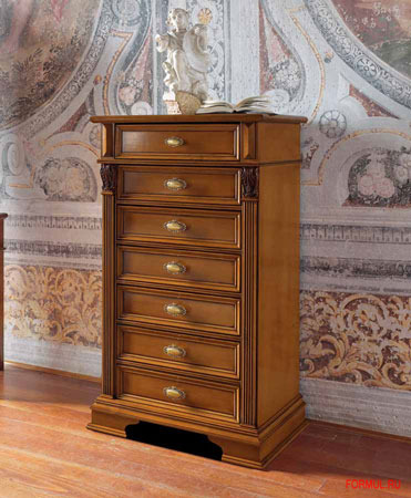 Изысканный высокий комод серии Puccini с 7-ю ящиками, выполнен полностью из дерева, в традиционном классическом стиле. (цвет вишня)