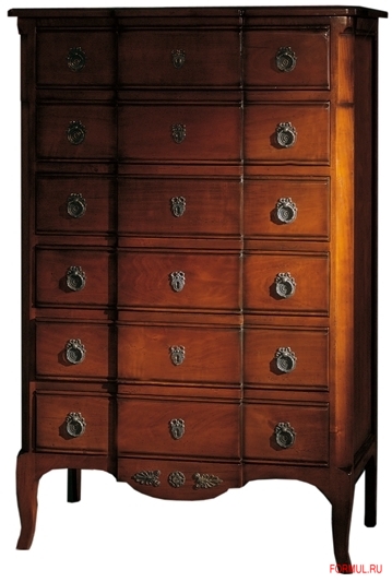 Высокий комод в классическом стиле. Выполнен из древесины вишни. Включает шесть выдвижных ящиков в традиционном соединении "ласточкин хвост". Отделка поверхностей – лак, пчелиный воск.