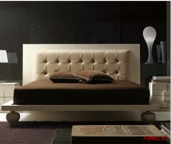 Двуспальная кровать с высоким изголовьем и небольшим подиумом.