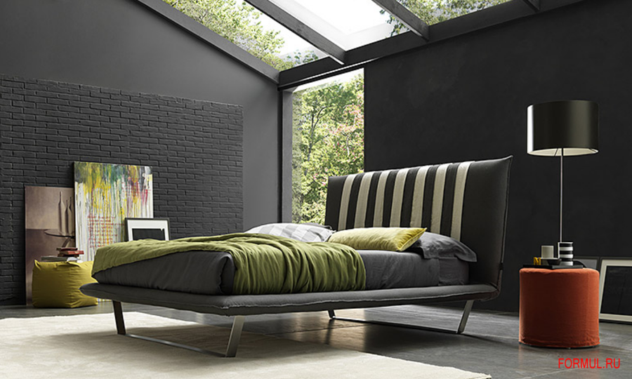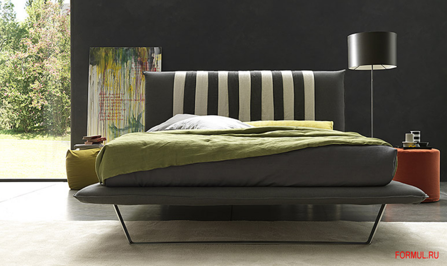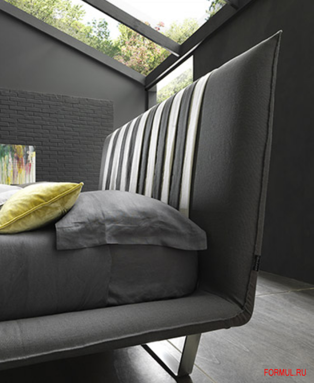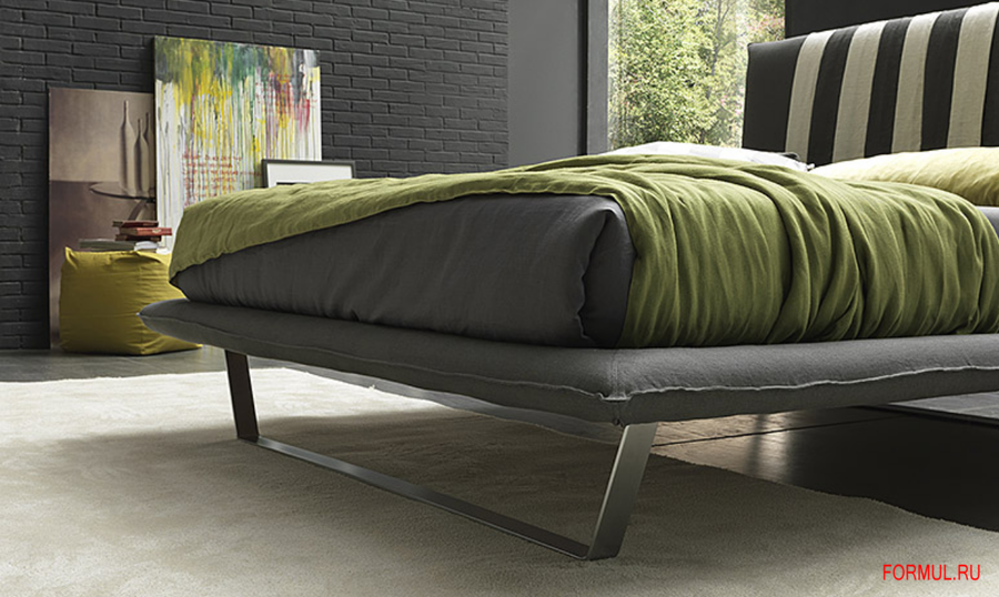 Современный плиссированный эффект придает кровати мягкости используется изысканная ткань от Dominique Kieffer. Данная модель имеет ножки выполненные из металла , что придает современный вид кровати.