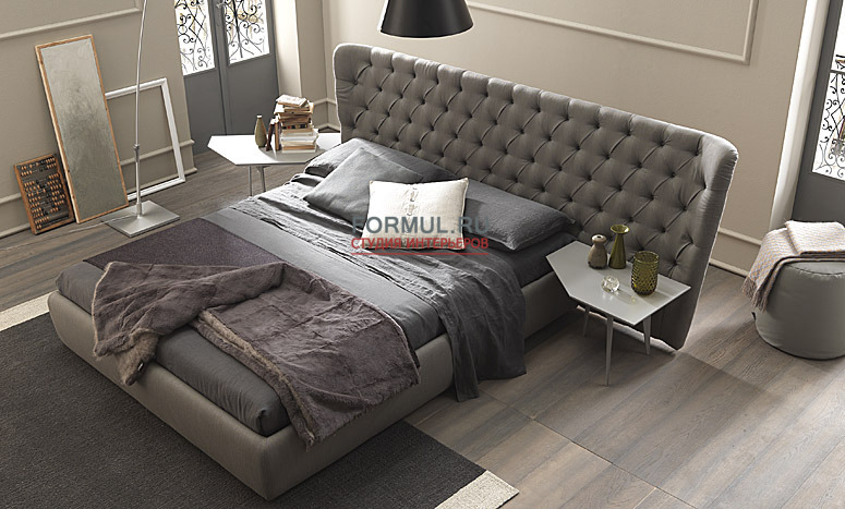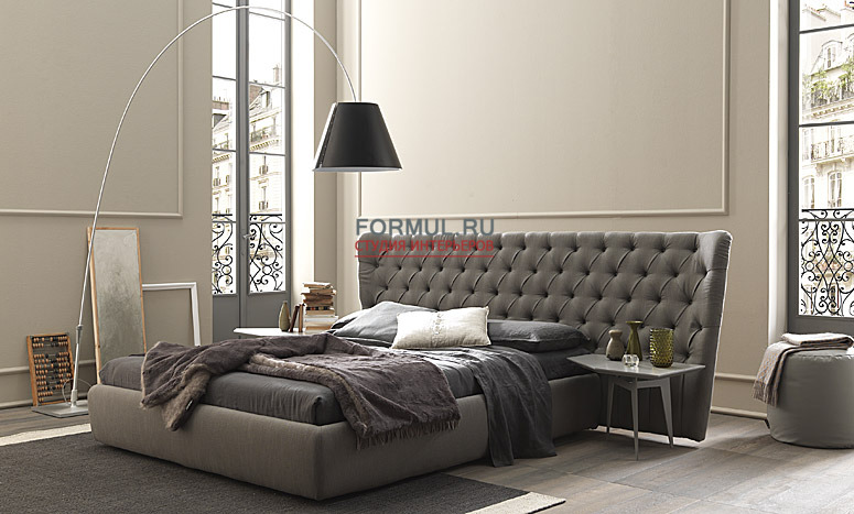 Мягкая кровать с высоким изголовьем в обивке из ткани или натуральной кожи. Изголовье может быть украшено декоративной стежкой с кристаллами Swarovski. В комплект изделия может входить ортопедическая решетка с подъемным механизмом и контейнером для хранения постельных принадлежностей. Возможны два вида подъемной решетки: стандартная (открывается под углом, при поднятии одного края), и с механизмом Easy Up (поднимает матрас равномерно), который не только дает доступ к ящику, но и облегчает процесс заправки постели. Классические нотки в современной интерпретации – вот в чем секрет этой модели, которая кажется одновременно и уютной, и стильной.
