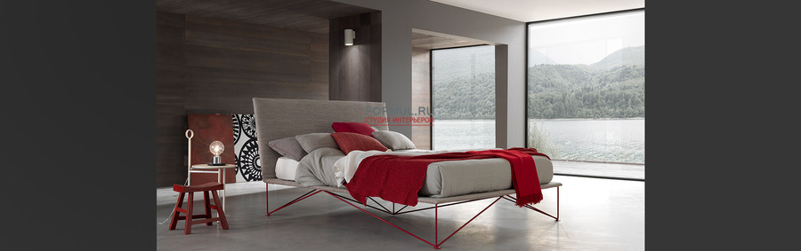 Изящная кровать на металлической раме, которая опирается на каркас состоящий из сблокированных тонких ножек, что делает этот предмет мебели уникальным. Привлекательным моментом является изголовье: вы можете выбрать ткань, узор и цвет в зависимости от вашего вкуса.