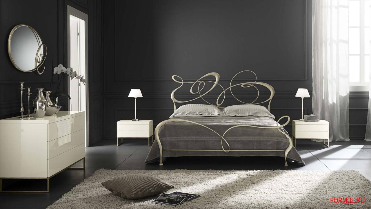Изголовье и изножье металлические из кованных ажурных завитков, ножки прямые.