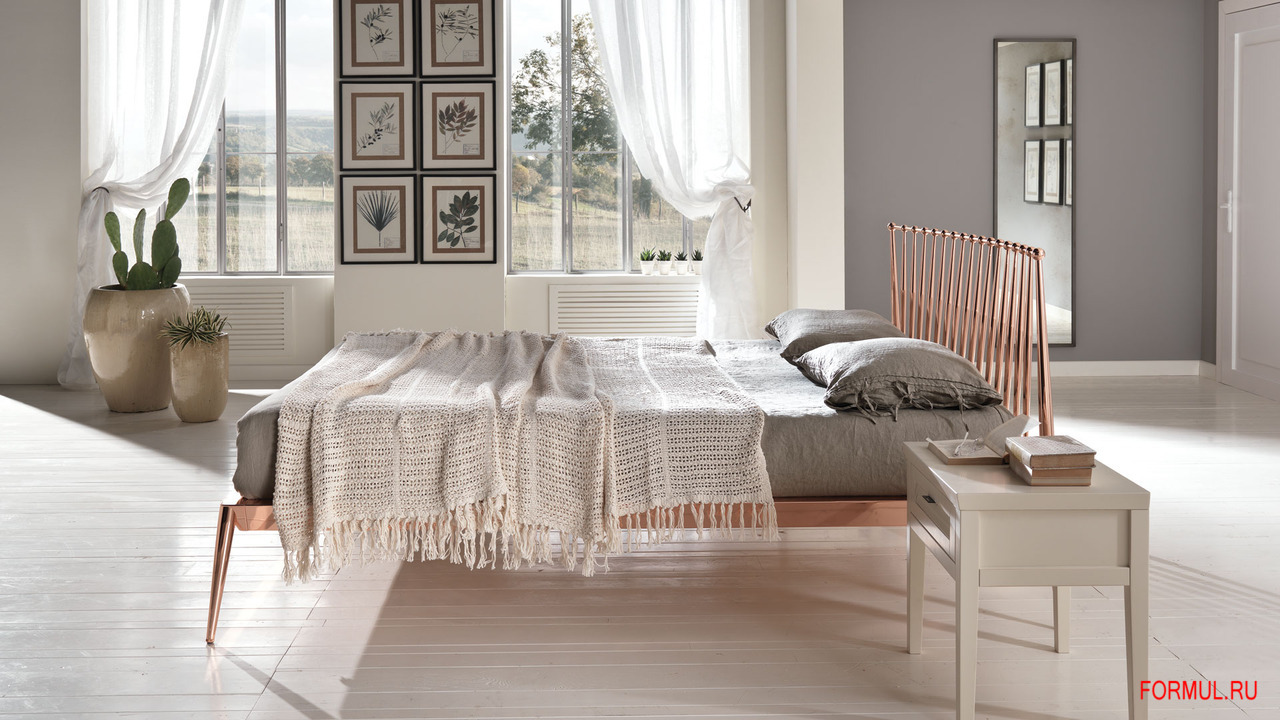 Двуспальная кровать Urbino от итальянского производителя Cantori выполнена из металла холодной обработки, трапециевидной формы.
