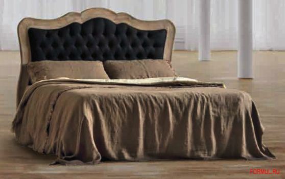Изголовье выполнено из массива дуба , обитое черной тканью.