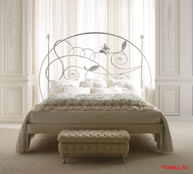 Изящное, ажурное изголовье сделано из тонких металлических прутиков.