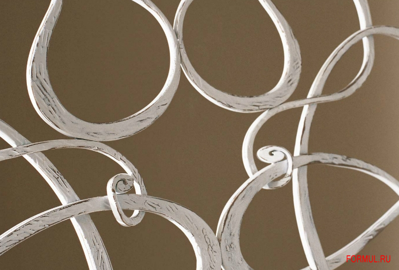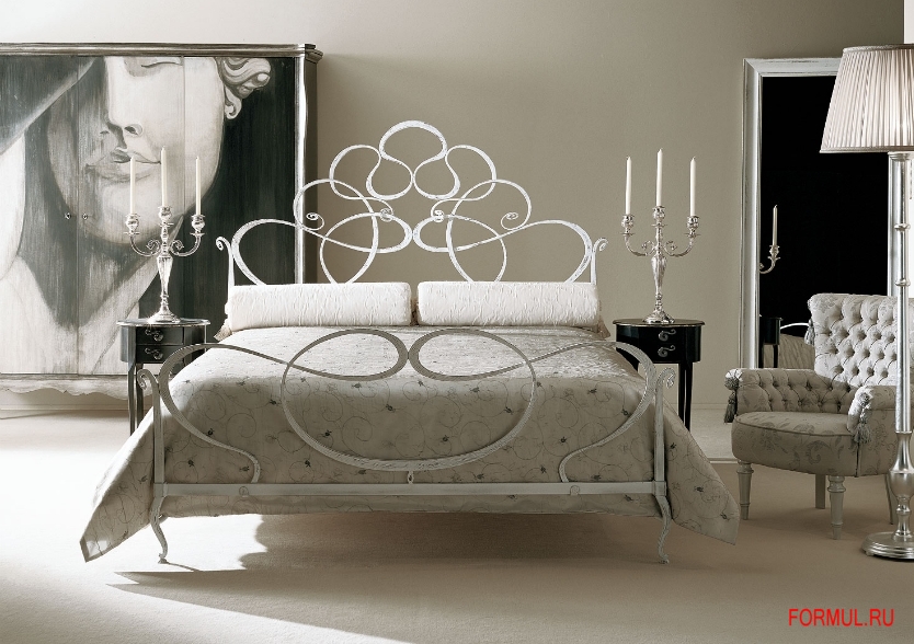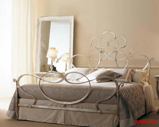 В дизайне этой модели использованы выкованные вручную элементы, придающие железному каркасу изысканный и утонченный вид.