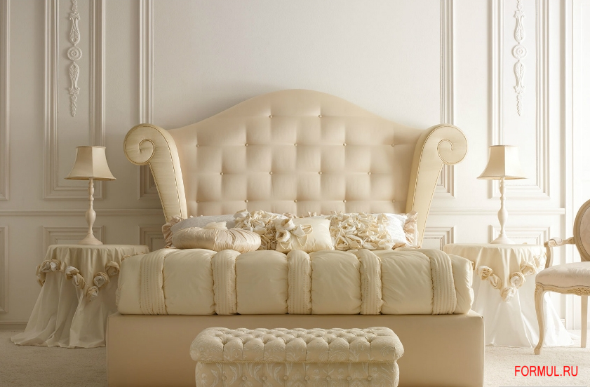Высокое, фигурное изголовье по вашему желанию может быть изысканно гладким или же эффектно декорировано в технике "Капитоне", возможна отделка кристаллами Сваровски.