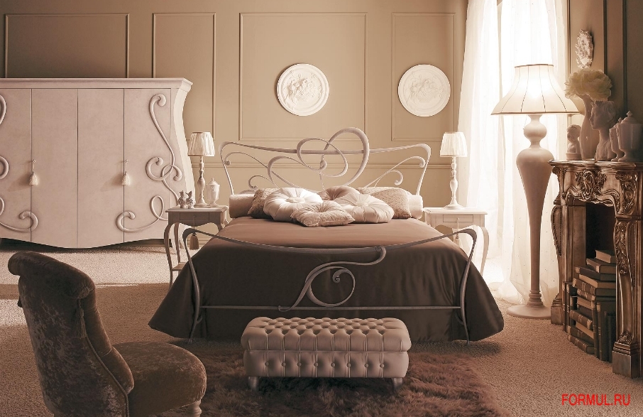 Кованая кровать Susan имеет изголовье, в узорах которого можно разглядеть элементы нотного стана и скрипичный ключ.
