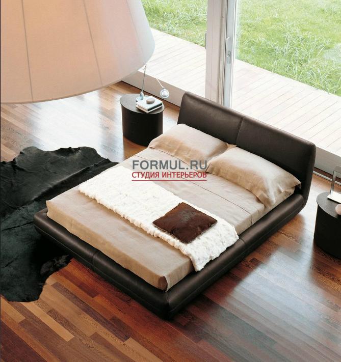 рева. Прямоугольное изголовье и каркас обтянуты тканью или кожей. Полиуретановое наполнение. Высота кровати от пола, см: 25. Размер матраца, см: 160х200 и 180х200. Модель может быть дополнена контейнером для хранения спальных принадлежностей. Цена указана для модели без короба для белья.