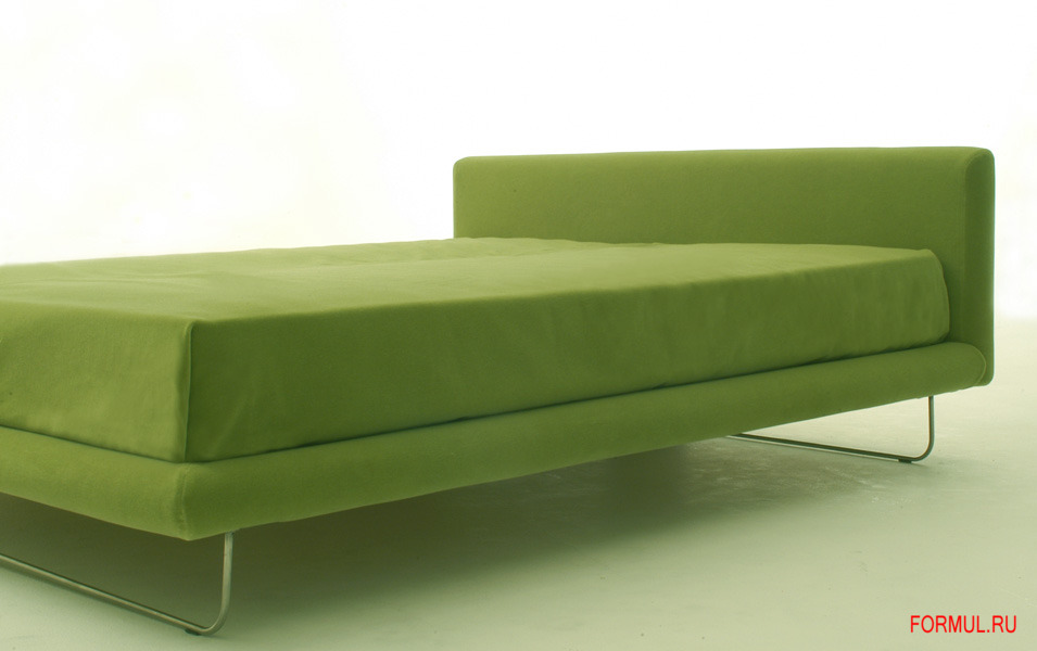 Кровать на каркасе из нержавеющей стали (трубки). Матовая отделка. Наполнитель - ППУ различной плотности. Технический чехол из полиэфирного волокна с синтетическим вельветином. Съемная обивка - кожа / текстиль.