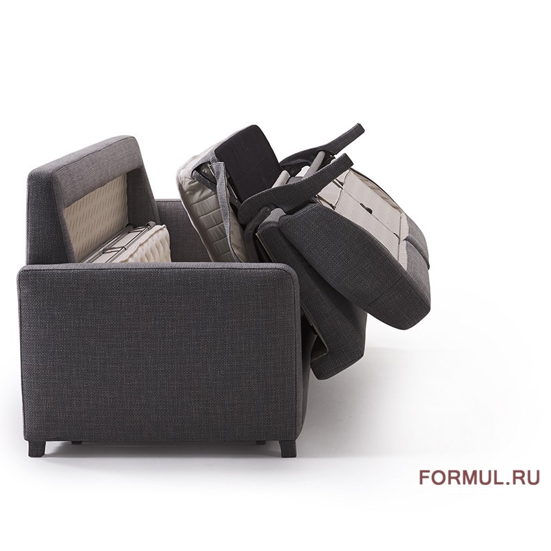 Формы этого современного дивана-кровати просты, но продуманы до мельчайших деталей, чтобы их можно было вписать в гостиные или кухни-гостиные, где вы хотите сочетать эстетику и функциональность. Одним движением диван-кровать раскладывается с помощью механизма складывания, позволяющего извлечь матрас, просто потянув спинку на себя. Доступные матрасы имеют высоту 16/18 см и поэтому идеально подходят для ежедневного использования дивана-кровати.