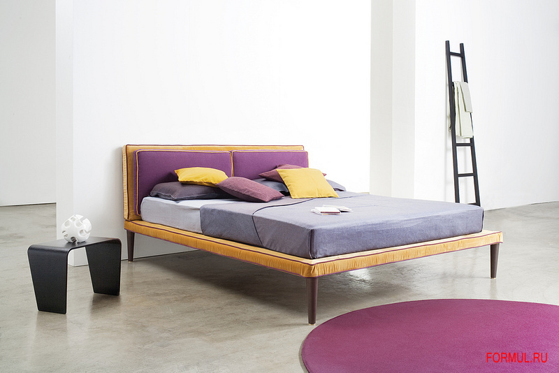 Дизайн и яркая индивидуальность отделочных тканей подчеркивают ведущую роль кровати в спальне.