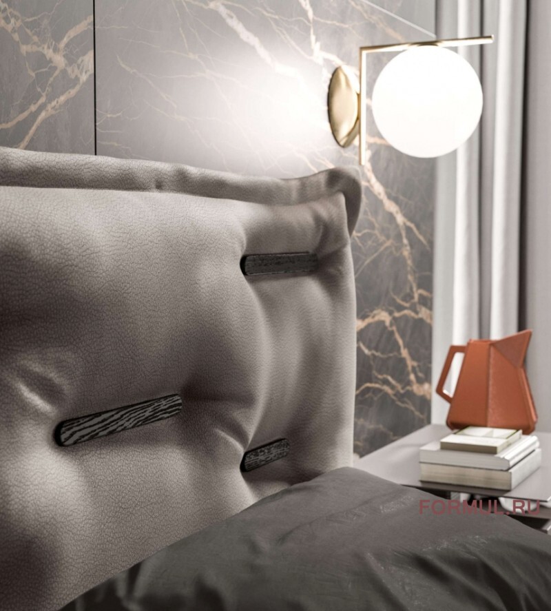 Кровать Saona от итальянской фабрики Ozzio Italia представляет собой гармоничное сочетание современного дизайна и функциональности. Ее изголовье, обитое мягкой тканью или экокожей, украшено уникальными деревянными вставками, которые придают изделию особый шарм и привлекают внимание. Эти вставки создают интересный визуальный контраст, подчеркивая объем и структуру изголовья.