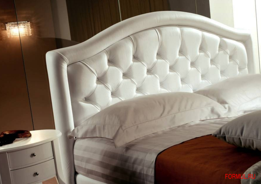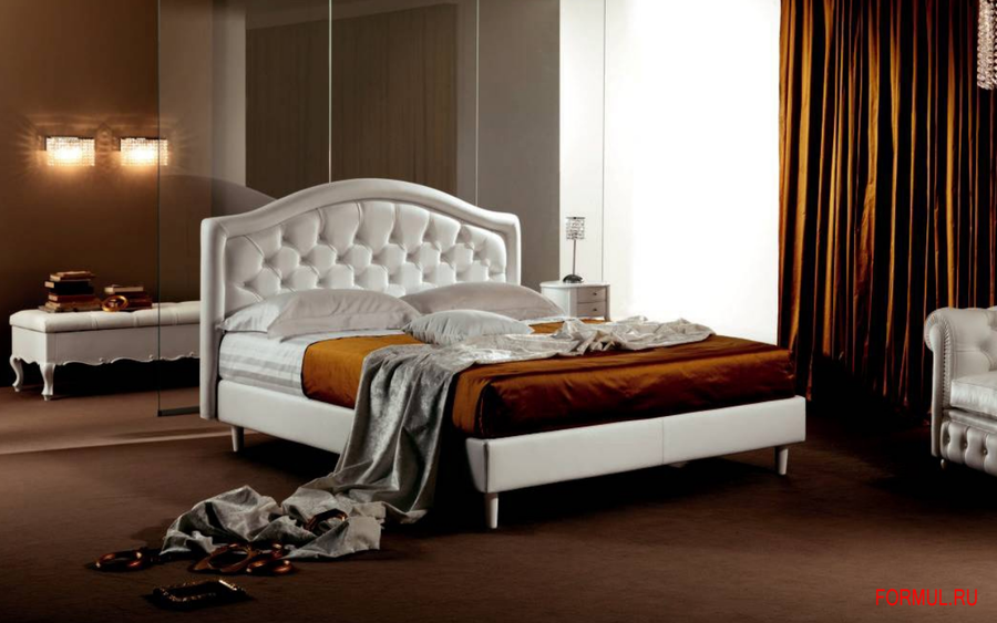 Двуспальная кровать Hermes K от итальянского производителя Piermaria. Каркас выполнен из массива древесины, обивка - кожа или ткань из ассортимента кампании. Изголовье украшено стежкой-капитоне.