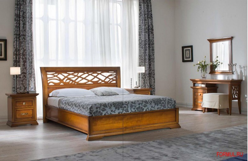 Возможен выбор различных вариантов кроватей: с резным изголовьем, с