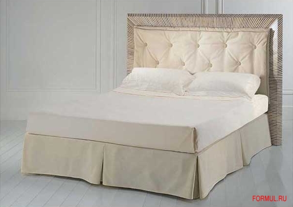 Двуспальная кровать с высоким мягким изголовьем, без изножья, основание обито тканью.