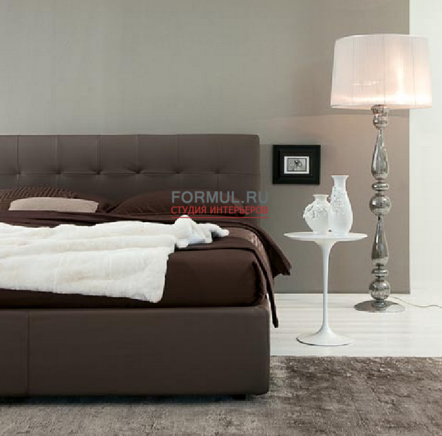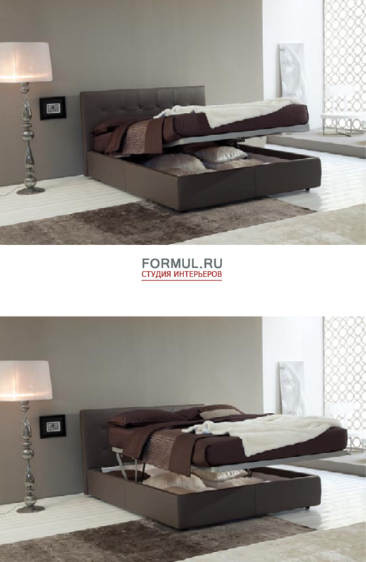 Модель в современном стиле с высоким и мягким изголовьем. Каркас выполнен из массива тополя. Основание и изголовье выполнено из полиуретанового каучука в наволочке с бархаткой. В основании расположен объёмный ящик для белья.