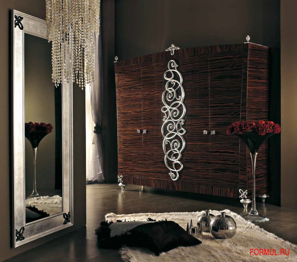 4-х дверный шкаф, фигурные ножки. Декорирован резными элементами, ручки выполнены с кристаллами Swarovski. Возможны другие варианты отделки.
