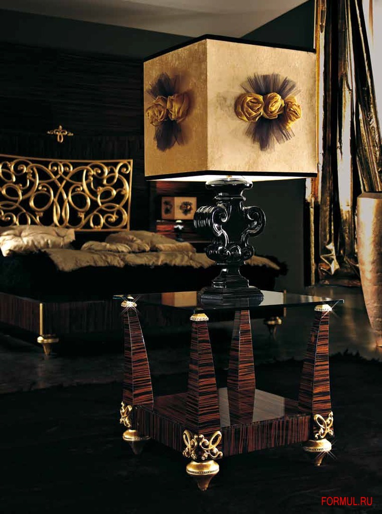 УВЛЕЧЕНИЕ… ЭЛЕГАНТНОСТЬ…БОГАТСТВО… это вдохновляющие слова, созда- ющие роскошный сон, который становится дей- ствительностью благодаря новой коллекции BLUE DIAMOND. В этом великолепном дизайне новых современных линий, формы сливаются с классикой, обладающей эксклюзивным и изысканным стилем. Теплые тона красного дерева придают коллекции BLUE DIAMOND очаровательную, мягкую атмос- феру, повышающую ценность любого интерьера и подчеркивающую ценную резьбу тонкого ручного украшения с использованием настоящей золотой и серебряной фольги. Наше внимание привлекает всеохватывающая роскошь, поэтому нас легко ослепляет уникальное сияние, издаваемое оригинальными хрустальными украшениями Swarovsky® в оправах изящных рез- ных деталей и ценных тканей, которыми эта кол- лекция настолько богата... Все они представляют собой необходимые