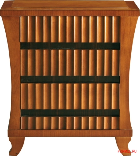 Имеет оригинальные вставки и форму декорирования ящиков.