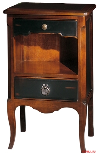 Прикроватная тумбочка в классическом стиле. Выполнена из древесины вишни. Включает два выдвижных ящика в традиционном соединении "ласточкин хвост" и открытую нишу для хранения. Отделка поверхностей – лак, пчелиный воск.