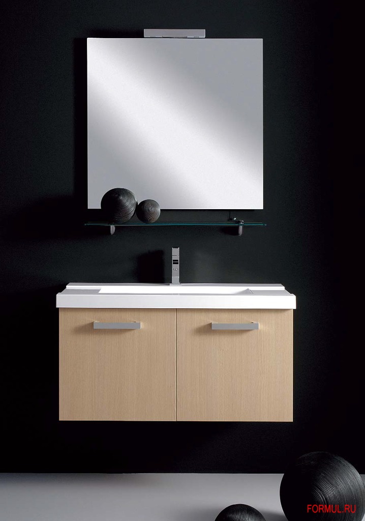 Моноблоки, соединенные с зеркалами, зеркала-шкафчики и полки, соединенные с простыми элементами, такими как пеналы и подвесные шкафчики, создают огромный выбор комбинаций в интерьере.