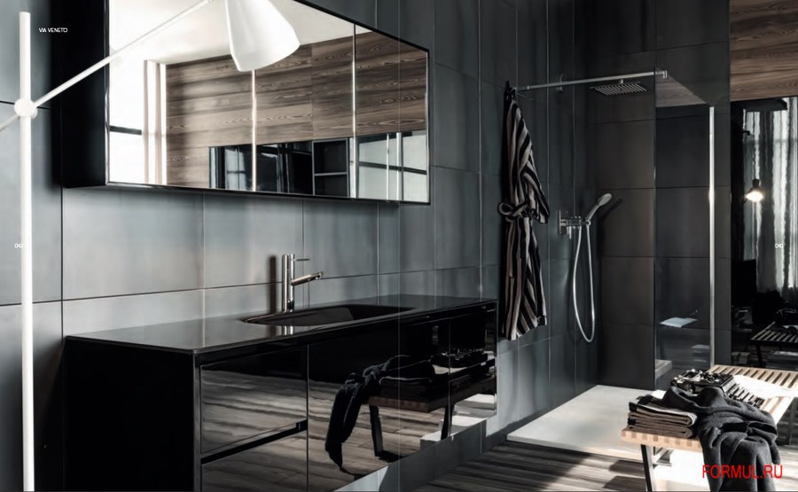 Коллекция Via Veneto, созданная в 2009 году Falper Design, является наиболее полной и разнообразной сборочной системой для ванных комнат. В ней представлены различные типы раковин – накладные, выступающие, встроенные, 5 типов ручек, 21 вариант ширины, 3 варианта высоты и 3 варианта стандартной глубины, изогнутые элементы, варьирующаяся глубина, а также возможность изготовления под размер и цвет клиента.