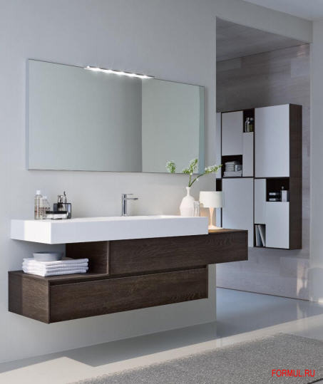 - Подвесная база под одну встроенную раковину с двумя ящиками