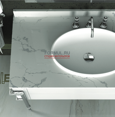Керамическая раковина с мраморной столешницей из новой коллекции TIME в сочетании с латунными ножками - неотъемлемая часть современной ванной комнаты.