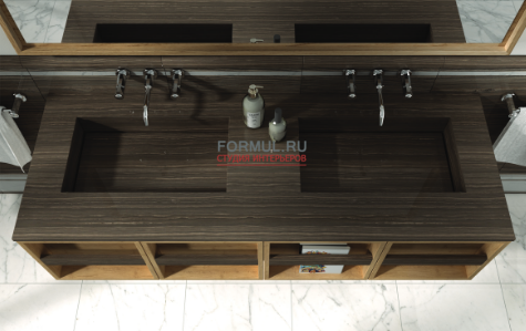 Раковина, отличительной чертой, которой является фронтальная панель, выполненная из дерева Rovere(дуб), подойдет для современной ванной комнаты, в которой будет царить гармония между городским стилем и природой.