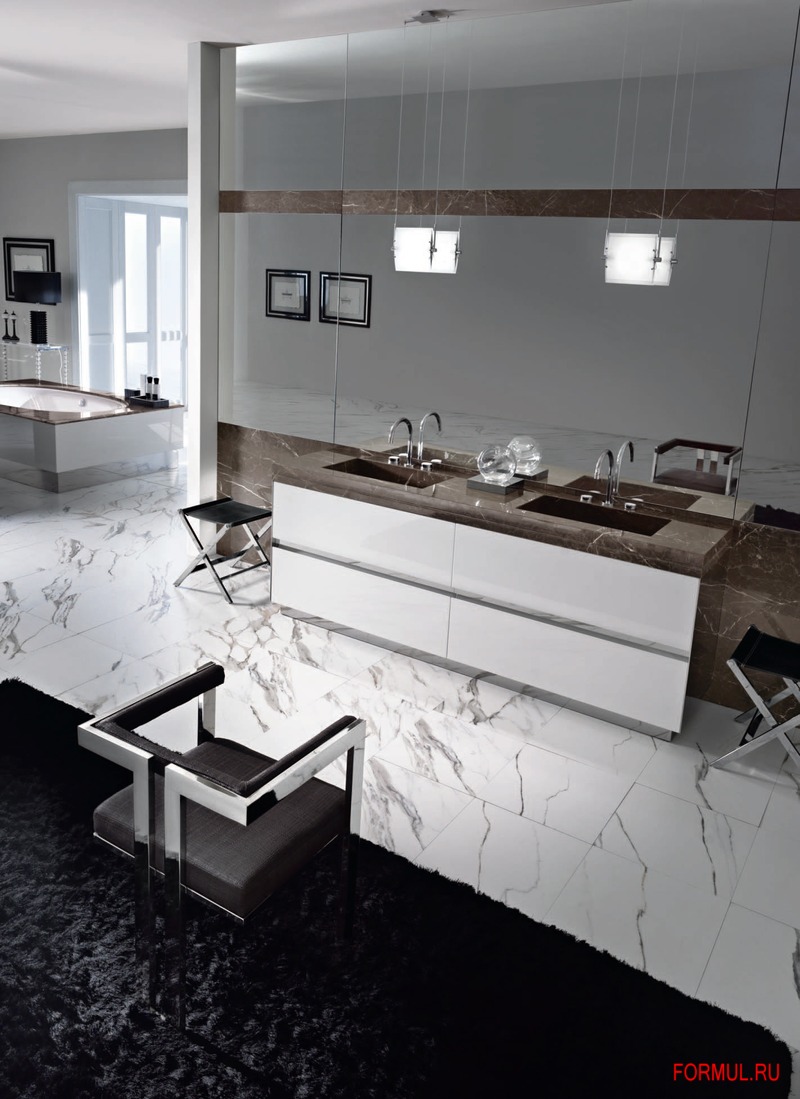 Зеркало и стенные панели мод. Montreal с сегментом из мрамора A58 Amani