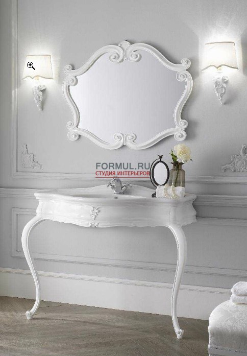 Композиция для ванной комнаты Prevert. Консоль с элементами ручной работы, зеркало, светильники.