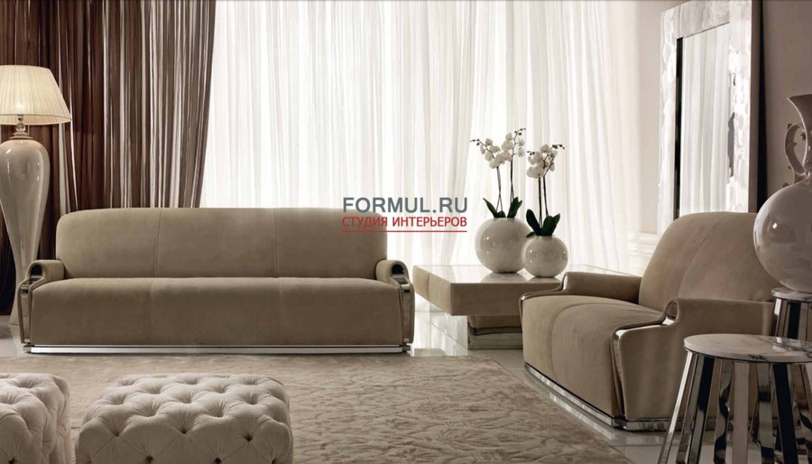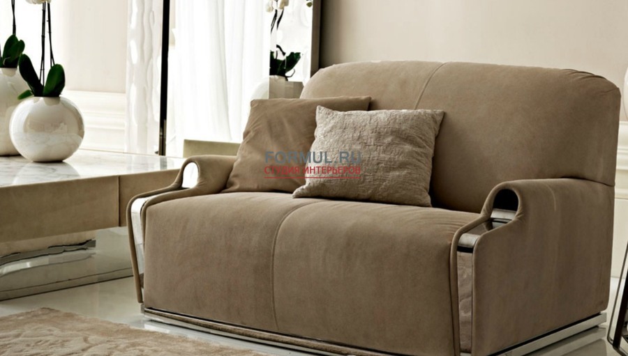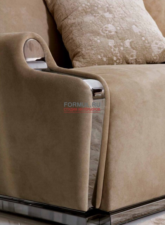 Элегантный нераскладной диван Lucrezia для гостиной как в классическом, так и в современном стиле. Особой отличительной деталью являются металлические хромированные накладки на подлокотники оригинальной формы. Для обивки дивана используются ткань или кожа.