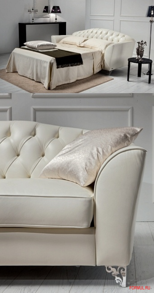 Диван трехместный от итальянского производителя LOIUDICED, модель DIVINA. . Выполнен в классическом стиле, имеет раскладной механизм. На заказ возможны различные варианты обивки кожи, ткани и ножек.