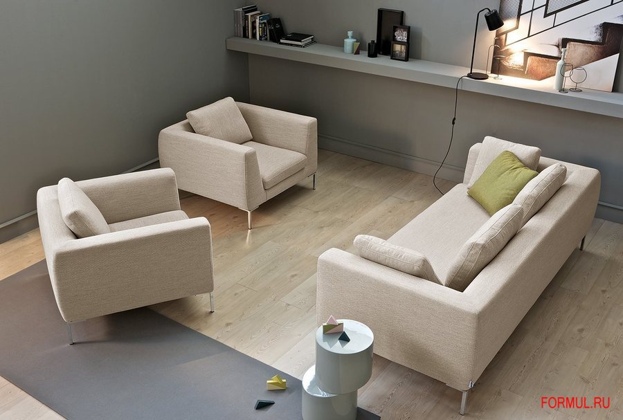 Завершающим штрихом дивана выступает ряд подушек — часть их имеет декоративную отделку в виде прострочки.