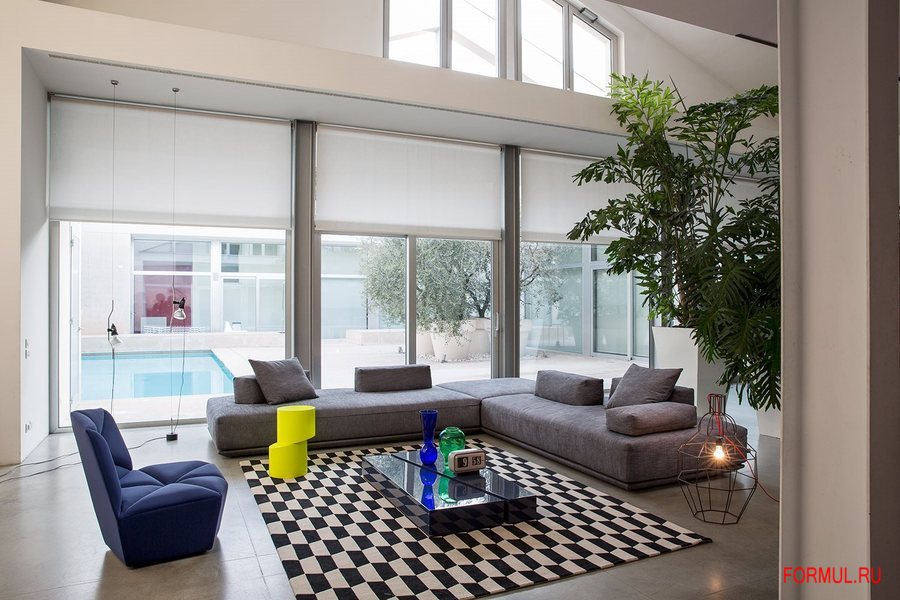 При желании отдельные модули располагаются в разных частях помещения — это позволяет зонально разделить пространство, сохранив при этом единую стилистику.