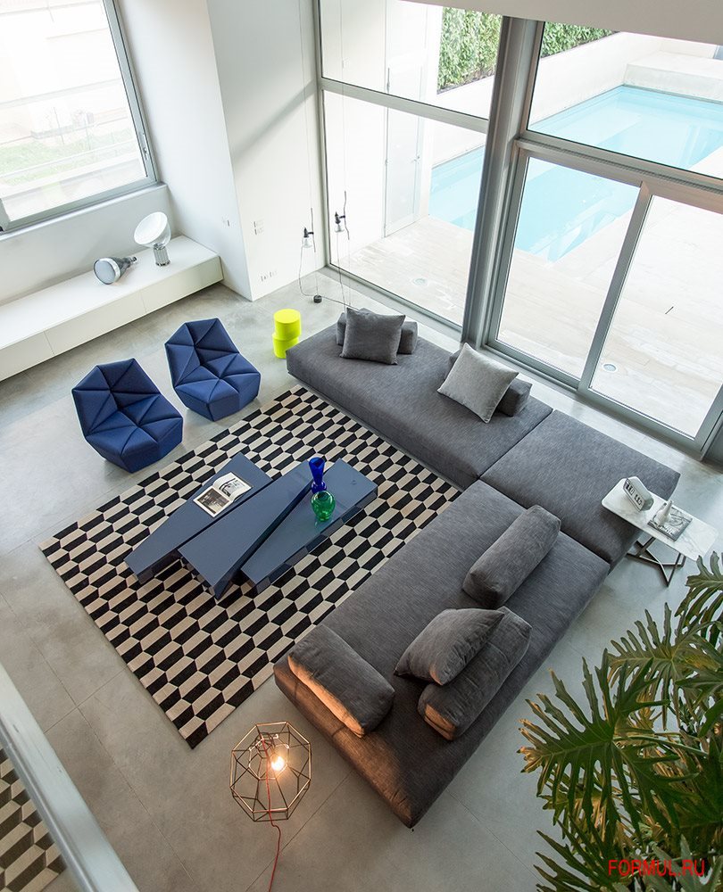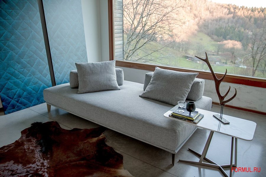Уникальность дивана Yoko заключается в его модульном построении: в максимальной комплектации модель представляет собой сочетание трех элементов различных форм и размеров, образующих многофункциональную систему.