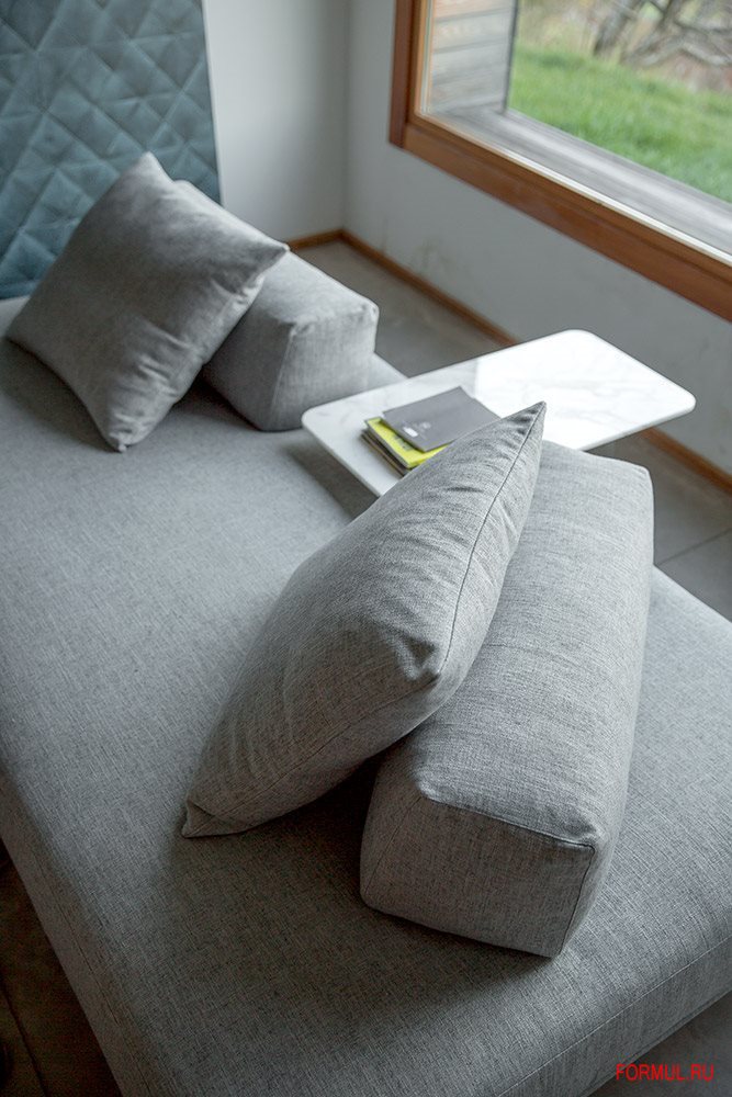 В зависимости от личных пожеланий по посадке диван можно оборудовать подголовниками либо дополнить подушками различных форм и размеров.