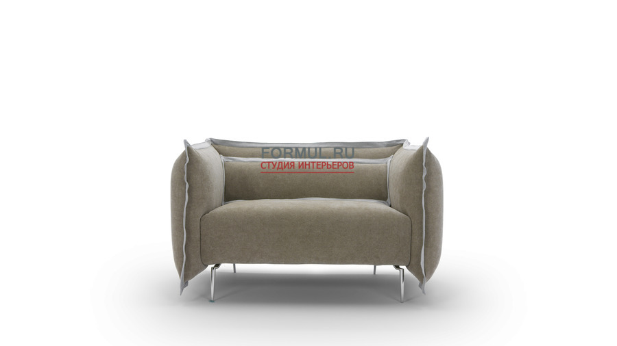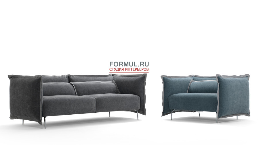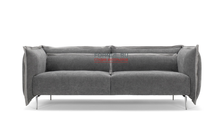 Алато - это легкий уютный диван, подобный мягкому сиденью, объятому крыльями. Формы смягчены оригинальной отделкой подушек. Диван установлен на высоких и элегантных ножках из хромированного железа.