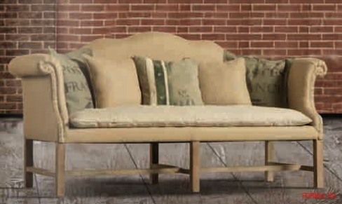 Каркас дивана выполнен из дуба и отделан желто-бежевой тканью.