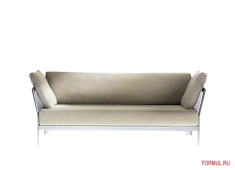 Диван. Каркас выполнен из алюминия, набивка:полиуретан и шерсть. Покрытие из ткани съемное, из кожи несъемное.