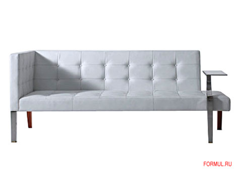 Диван. Каркас и передние ножки выполнены из стали, задние ножки дивана выполнены из дерева (красное дерево или ясень). Наполнитель подушек сидения и спинки - пенополиуретан. Обивка:кожа.