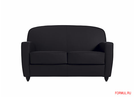 Диван. Каркас выполнен из дерева, обивка: пенополиуретан, ножки выполнены из бука, окрашенного в черный цвет. Покрытие: черная кожа, с кантом из белой кожи.