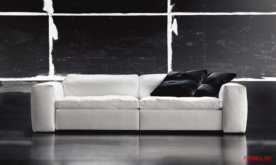 MOSAICO - Диван откидывающимися назад подушками. Металлический каркас со стальным основанием. Невидимые ножки в полипропилене черного цвета. сиденье на системе упругих лямок, дополняется недеформируещимся пенополиуретаном и покрыто полиэфирным волокном, покрытие 100% хлопок, наполнение гусиное перо. Стальные ножки с матовой отделкой. Чехлы могут быть выполнены из ткани или кожи.